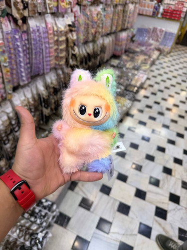 عروسک لبوبو طرح انرژی رنگین کمان با گردنبند پاپ مارت